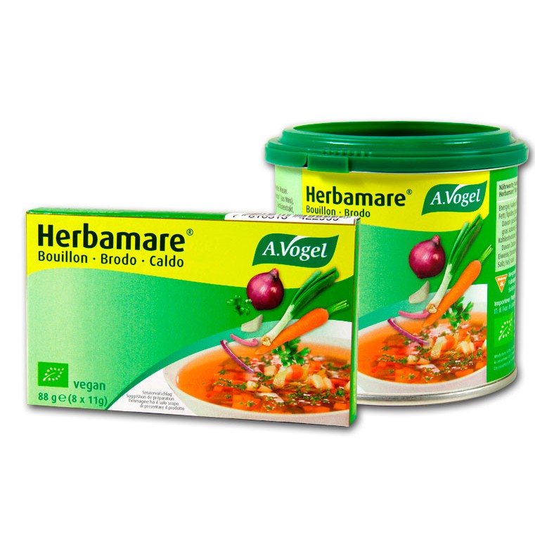 Herbamare Cubitos Caldo Vegetal con Sal SinGluten Bio Vegan 8cubitos A.Vogel es el help ideal para dar un toque excepcional en platos como arroces, sopas, potajes, estofados, salsas, guisos, etc. Permite crear una sabor biológico intenso y auténtico, sin gluten ni aditivos artificiales. Puede usarse en todos los platos para añadir un toque de verduras frescas, hortalizas y aromas naturales.