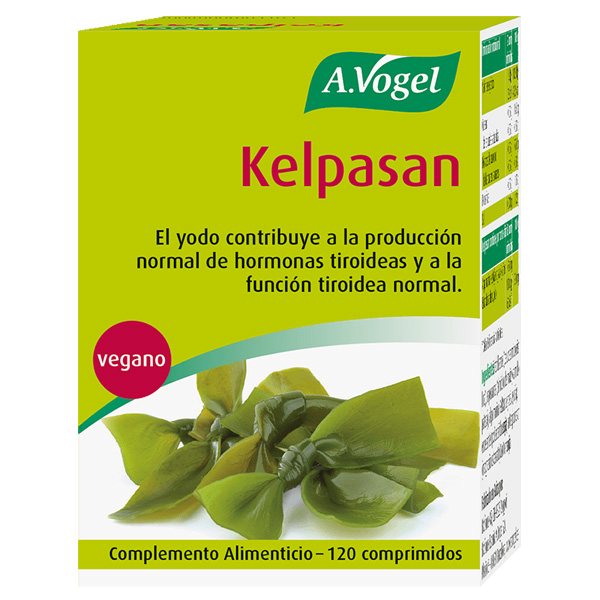Kelpasan 120comp A. Vogel es un preparado a base de algas y una fuente natural de yodo. Presenta un contenido 100% natural y biodisponible, siendo muy rico en yodo. Algunas personas tienen una deficiencia de este mineral, y su ausencia suele tener efectos negativos sobre el metabolismo. Por lo tanto, las propiedades del yodo son de suma importancia para la buena salud de la glándula.