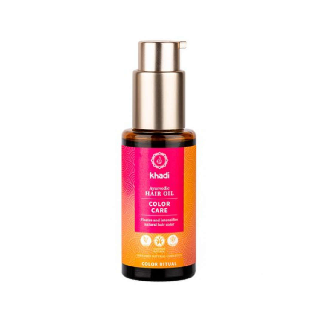 El Aceite Capilar Cuidado del Color tiene una formulación única que une naturalmente los pigmentos de color de su tinte natural Khadi al tallo del cabello.