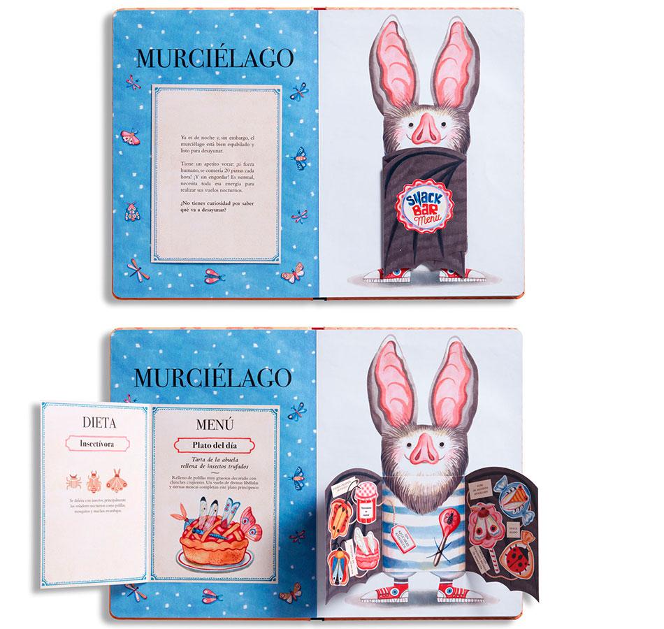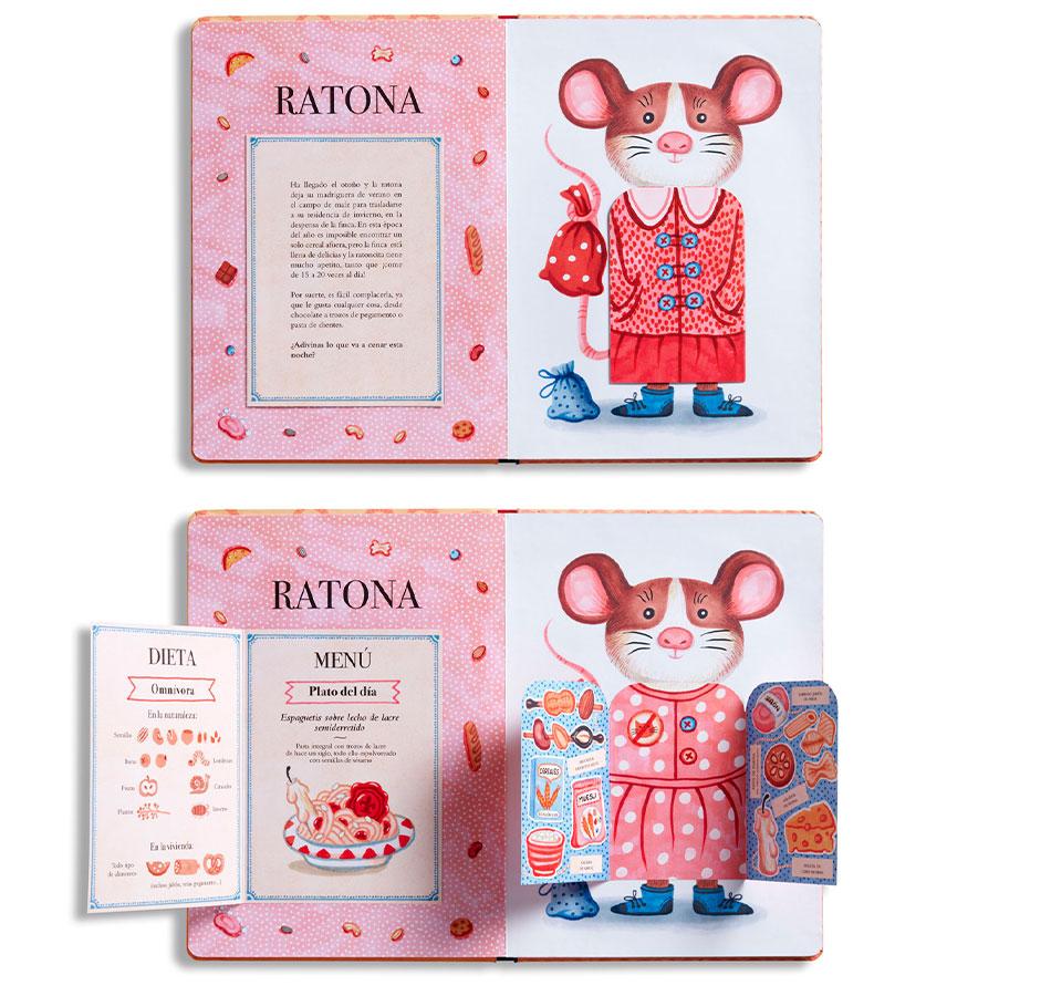 ¿Sabías que hay animales con gustos bastante peculiares? Probarías una piruleta de lombrices, un pastel de babosas o colas de ratón en escabeche? ¡Una delicia para los paladares más exquisitos! Despliega las solapas y sorpréndete con los platos favoritos del tejón, el topo, el búho y otros animales.