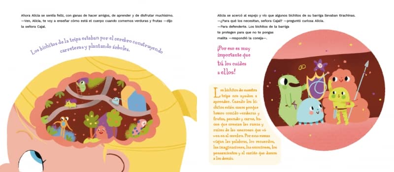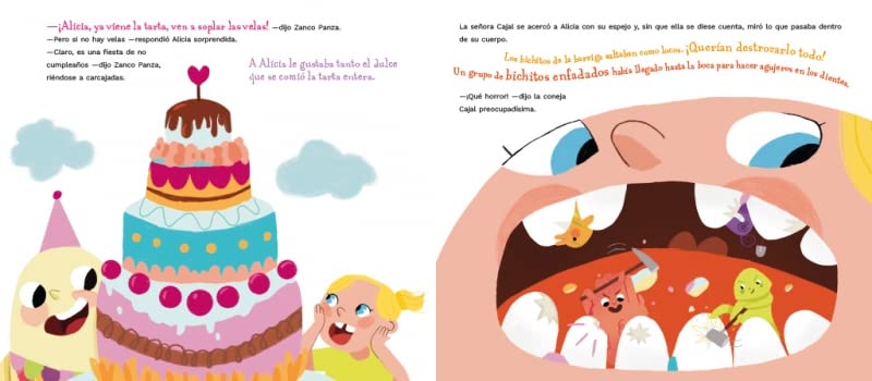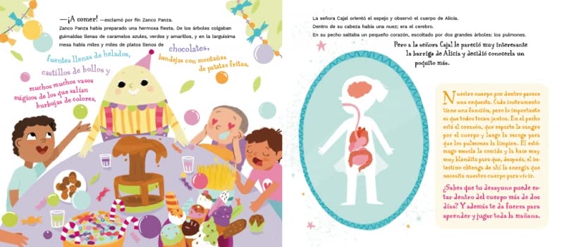 Descubre todo esto y mucho más acompañando a Alicia en su viaje hacia el centro de su barriga, porque desde allí también tomamos muchas decisiones, y es también un gran centro neurálgico de emociones, aprendizaje y estados de ánimo. En este segundo libro Alicia se encontrará con el señor Zanco Panza en su fiesta de Feliz No Cumpleaños, y junto a la señora Cajal descubrirán cómo afectan a nuestras emociones los diferentes alimentos que comemos.