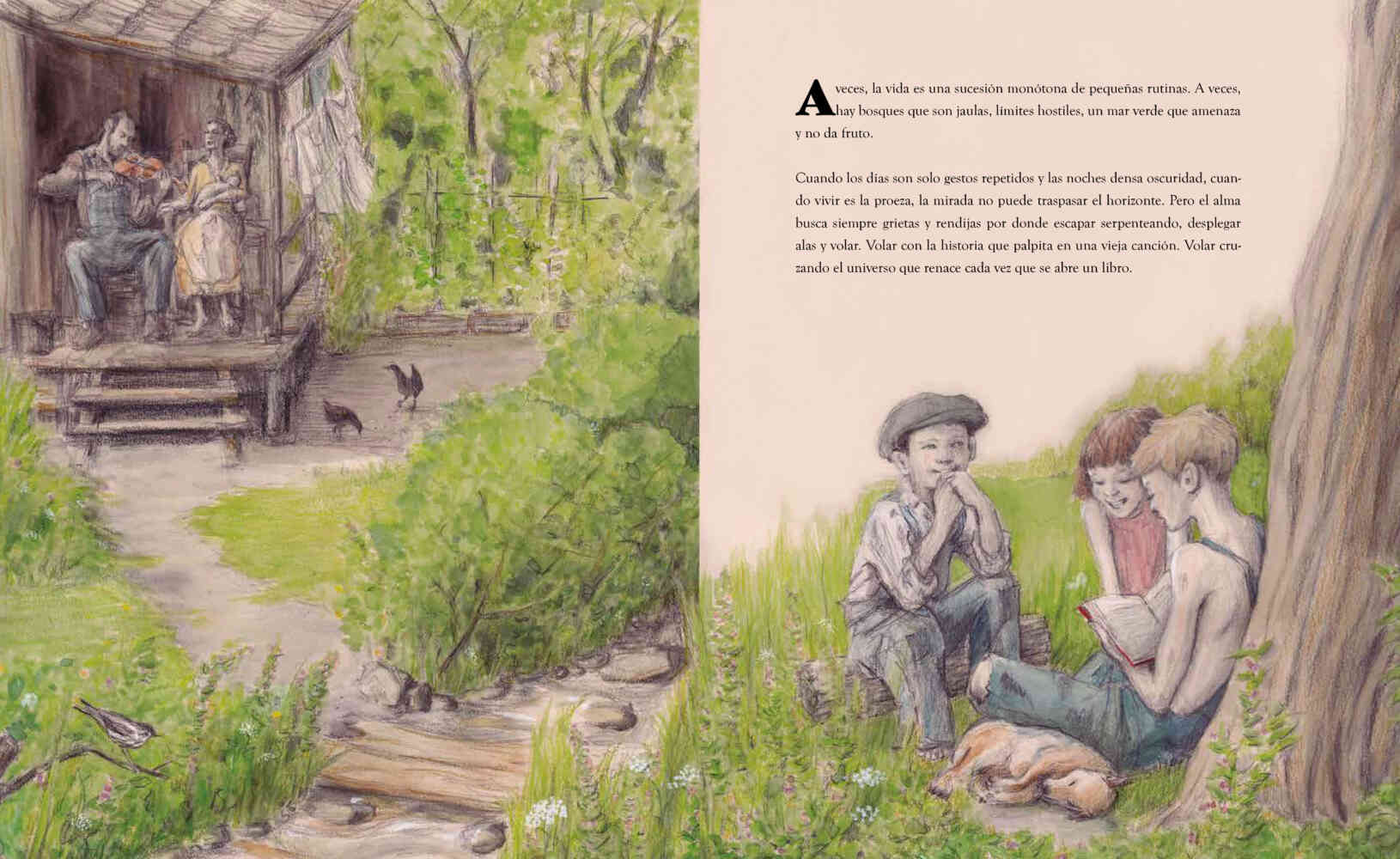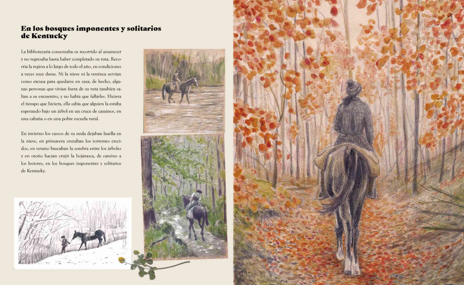 Durante la Gran Depresión en Estados Unidos, muchas mujeres fueron contratadas como bibiliotecarias. Como en Kentucky, en la zona de los Apalaches, las viviendas estaban muy dispersas, se pensó que lo mejor sería distribuir los libros a caballo. Las bibliotecarias se convirtieron para estas personas que vivían tan aisladas y en medio de la pobreza, en la visita más deseada. Los libros que les traían les abrieron puertas y ventanas a mundos imaginarios, mejoraron sus conocimientos, su higiene, su alimentación. Les dieron a conocer su país y el mundo entero.