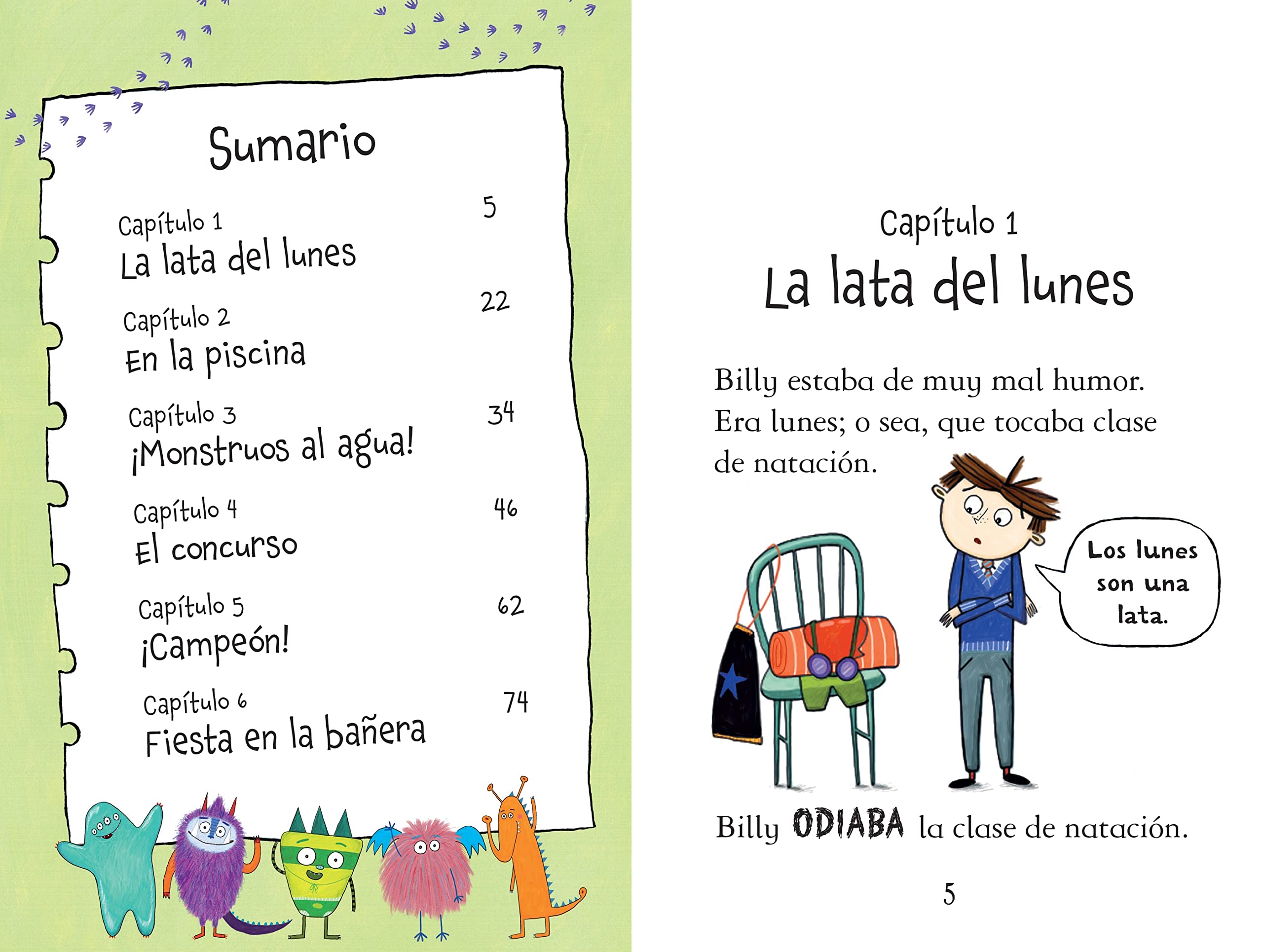 Billy odia nadar. Hace un tiempo horrible, frío y lluvioso, y justo cuando Billy pensaba que las cosas no podían ir a peor, aparecen los mini monstruos en la clase de natación y la lían parda.
