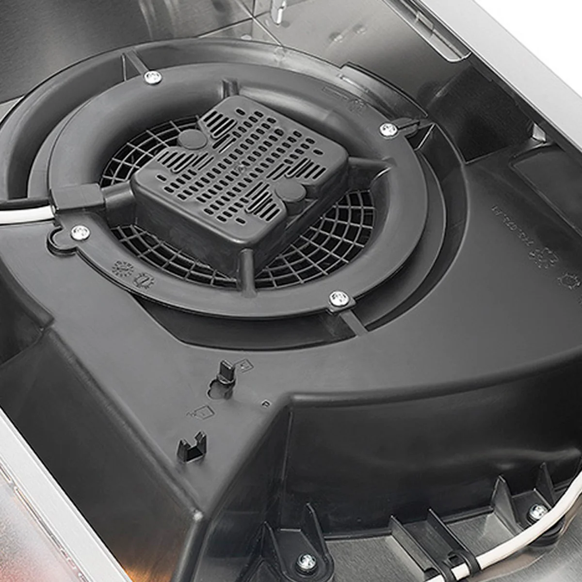 Cocina tranquilamente gracias al Motor turbina con 3 años de garantía y 3 velocidades con una capacidad de aborsión de 210 m³/ hr.