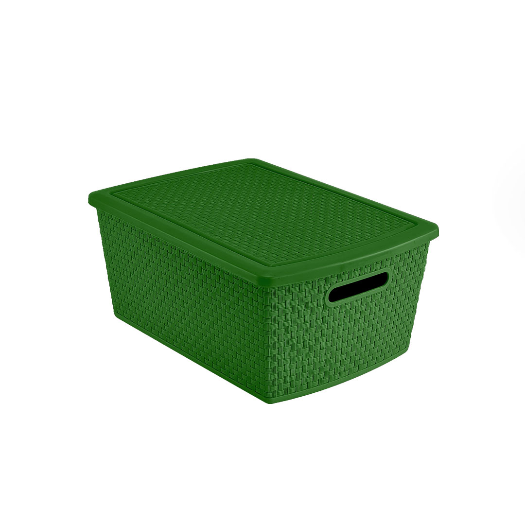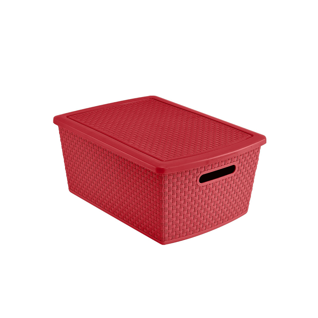 Nueva Canasta Ratán con tapa de 22 litros. Esta canasta plástica ratán está diseñada con dos espacios a cada lado para un agarre fácil y práctico. También incluye una tapa ajustable que la convierte en una práctica caja. Organiza, almacena y optimiza espacios, ideal para usarla en las habitaciones, baño, estudio, closets, lavandería, etc. Puede usarse junto al Gavetero Organízate.