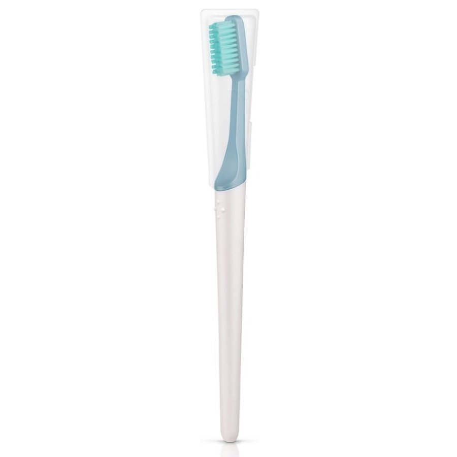 Consiste en un mango ergonómico reutilizable para un agarre sólido y el cabezal de cerdas reemplazable. El cepillo de dientes está cubierto con un capuchón higiénico para facilitar su transporte.