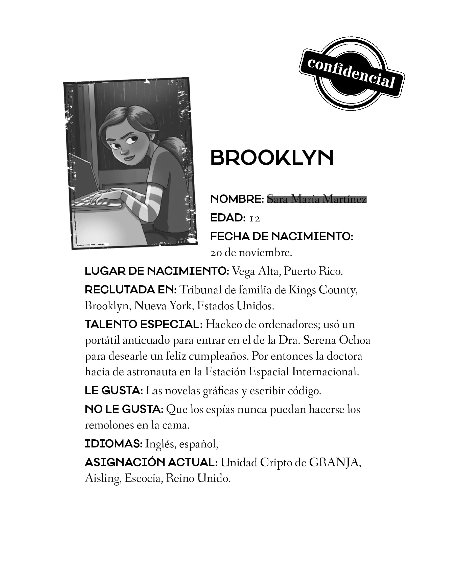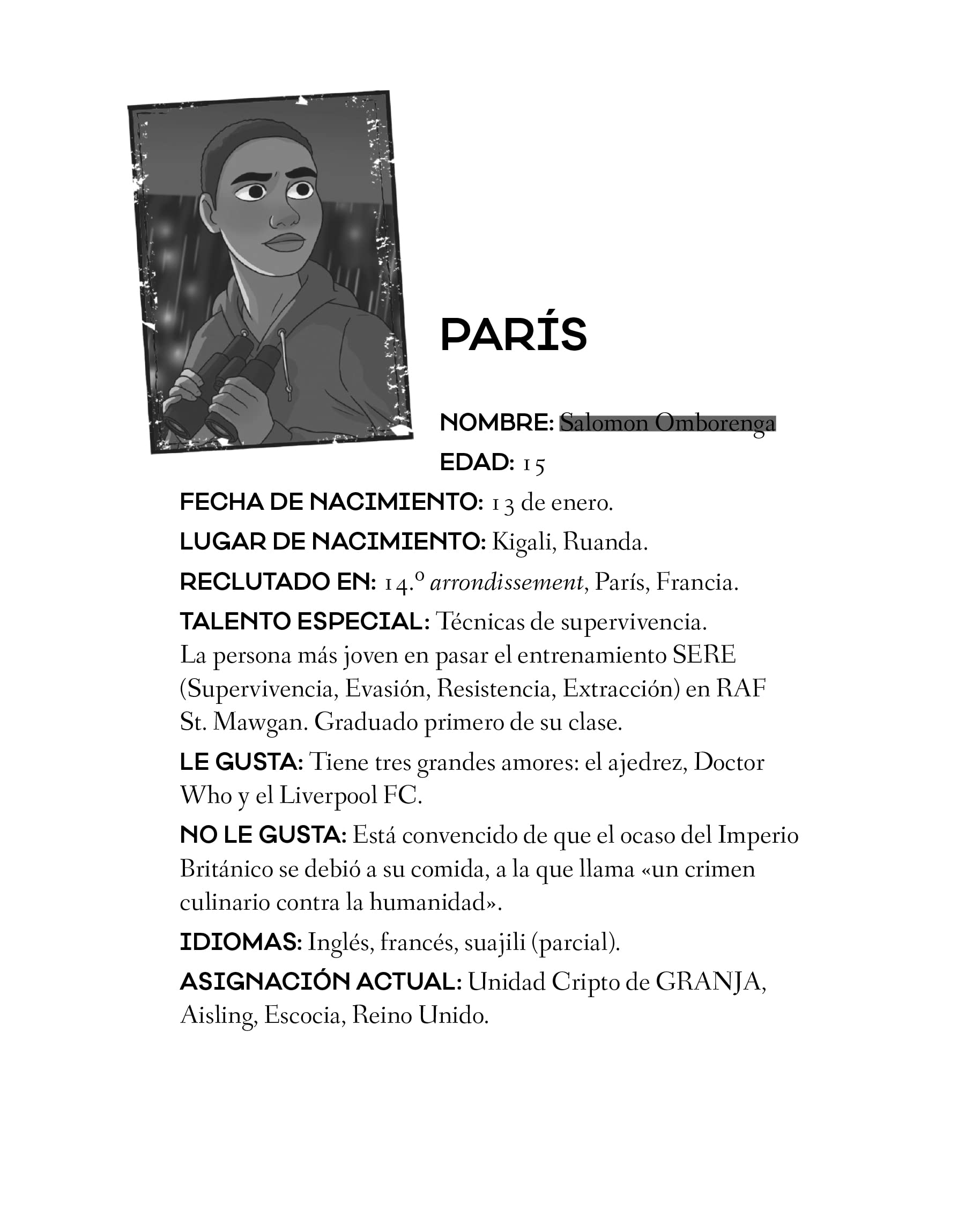 Sara solo tiene doce años y no hay ordenador que no pueda hackear. Incluso ha logrado entrar en la red del sistema de justicia juvenil de Nueva York (con un buen motivo), pero ahora está metida en un gran lío. Para salvarla de las acusaciones, llega un misterioso abogado que no es otro que el director de una escuela secreta para jóvenes espías. Pronto Sara formará parte de sus filas y conocerá a sus nuevos compañeros de equipo: Kat, Río, París y Sídney, todos con talentos extraordinarios. El entrenamiento acaba de empezar y Sara vuela a París, donde se celebra una importante cumbre climática con una oscura amenaza… ¡Una primera misión que no tendrá nada que envidiar a las de 007!