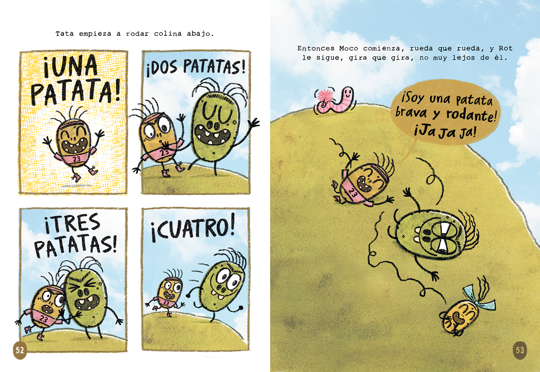 La patata mutante Rot Pata Tero, que ya ha aparecido en dos álbumes ilustrados, protagoniza ahora el primer volumen de una nueva serie con el sello inconfundible de Ben Clanton, autor de los Libros de Narval y Medu. Esta serie mezcla la novela gráfica con los cuentos por capítulos, cuyos diálogos están escritos en letras mayúsculas, un formato pensado para potenciar la lectura autónoma. Además, el carisma y la ternura de este trío de patatas mutantes amantes del humor absurdo, del barro y de los concursos épicos, mantendrá a los lectores riendo, cantando y animándolos desde la primera página hasta la última.