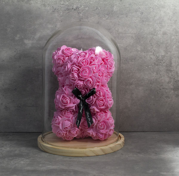 Sumérgete en un océano de ternura con esta encantadora Cúpula de Cristal de Ø20 H30 cm, que resguarda un Oso Foam en tono rosa. Una idea original para regalar en momentos especiales, donde el romanticismo se viste de suavidad.