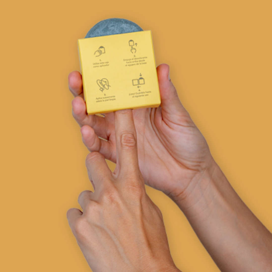 Utilizar la caja como aplicador abriéndola por el lateral e introduciendo el dedo por el agujero inferior para empujar el desodorante hacia arriba hasta que asome.