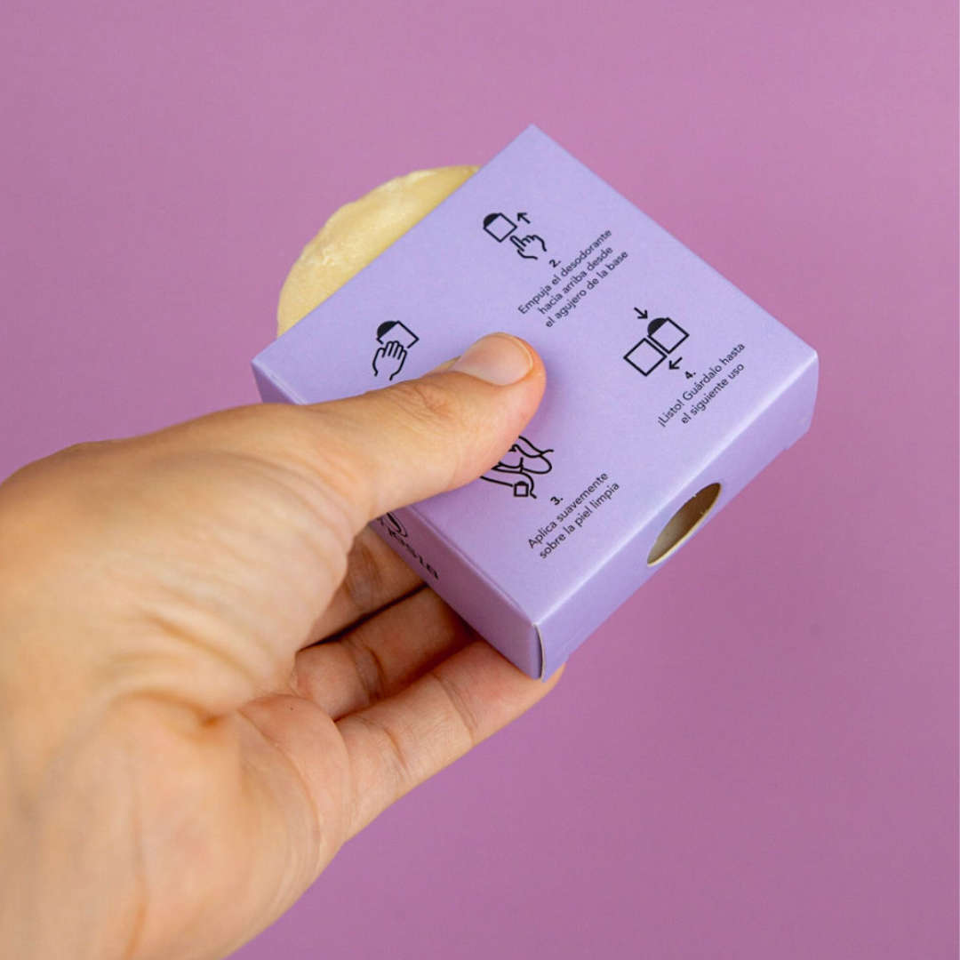 Desodorante 100% natural en formato sólido, ideal para controlar el sudor y neutralizar los olores de manera eficaz.