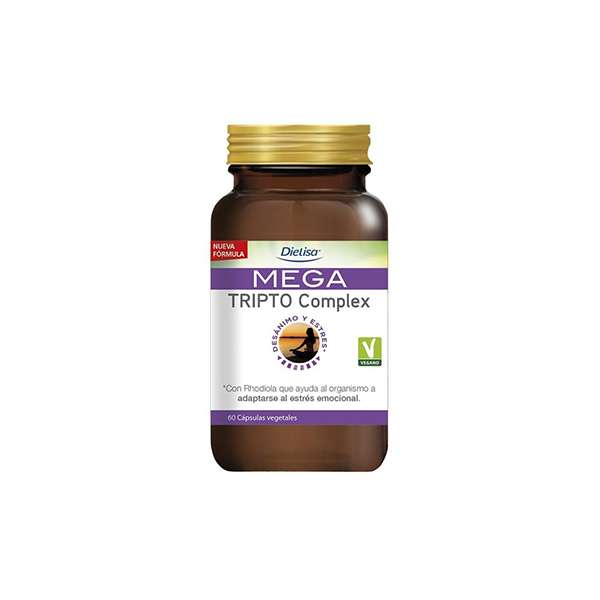 Mega Tripto Complex 60 Capsulas Dietisa es una mega fórmula que combina ingredientes sinérgicos para ayudar al organismo a adaptarse al estres emocional. Reduce el cansancio y la fatiga gracias a su contenido en Magnesio, Ácido Pantoténico, y la fórmula se completa con Rhodiola, L-teanina, Biotina y más.