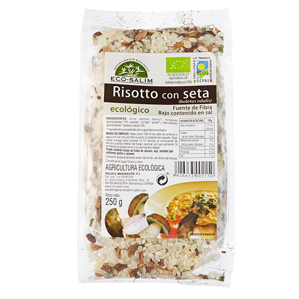 Risotto con Setas Eco 250g Eco-Salim es la respuesta ideal para los que saben valorar la extraordinaria calidad de los productos ecológicos. Está compuesto a base de arroz de la más alta calidad, así como por el resto de ingredientes que componen esta receta. Además, contiene setas de primera calidad para aportar ese toque extra de frescura y aroma a tu plato.