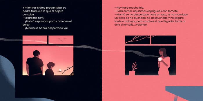 Y por otro lado, encontramos una historia cotidiana, como puede ser el proceso de aceptación de una separación, pero sin dejar de lado otro modo de lenguaje mágico, el que usan los padres para ayudar a sus hijos a comprender los cambios que forman parte de la vida.