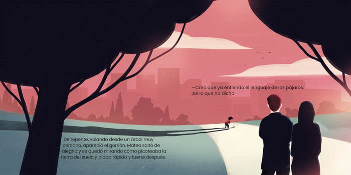 Por un lado, el mundo mágico de la imaginación infantil, donde todo puede ser posible. Un lugar en el que más allá de la rutina del día a día, pueden ocurrir cosas maravillosas, como comunicarse y entablar amistad con seres de otras especies, por ejemplo se puede aprender a hablar el lenguaje de los pájaros.