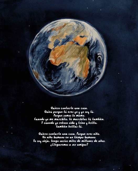 En este bellísimo libro ilustrado la escritora y artista sueca Matilda Ruta invita a niños y jóvenes a reflexionar y conversar entorno al planeta. De la mano de la pequeña Alice y su gatita Misse, el lector viaja a través del tiempo y descubre cosas increíbles como el origen del universo, la formación sistema solar, los planetas, la formación de los ecosistemas, la aparición de los primeros seres vivos… Además, plantea preguntas tan importantes cómo: ¿Quiénes somos? ¿Cuál es el origen de la vida? ¿Cómo es posible que unos pequeños animales como los seres humanos hayan destruido la naturaleza y los ecosistemas en tan poco tiempo? ¿Realmente el ser humano quiere destruir el ecosistema del forma parte? ¿O puede ser un animal diferente y más amable?