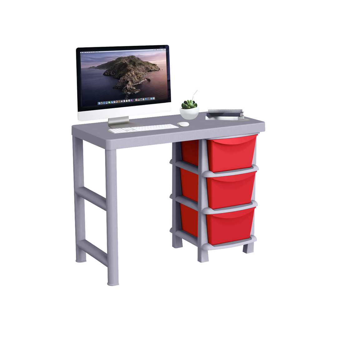 Escritorio Plástico Organízate Guateplast con gavetero Incluido (3 Gavetas). El nuevo Escritorio de Guateplast, es el mueble plástico necesario para realizar Tele Trabajo o Home Office, también para recibir clases en linea para jóvenes. Con sus gavetas plásticas te permite guardar útiles escolares o utensilios de oficina de forma práctica.
