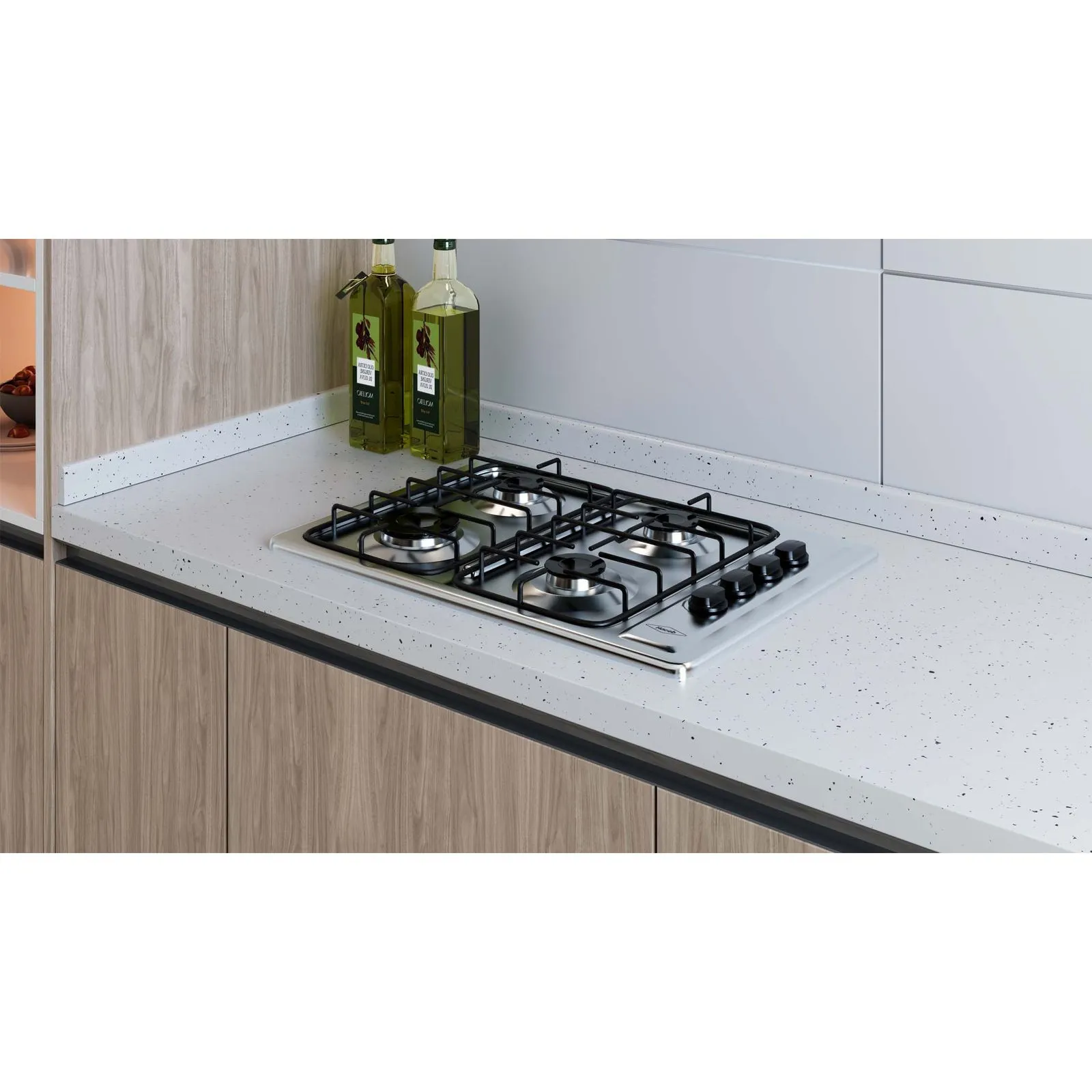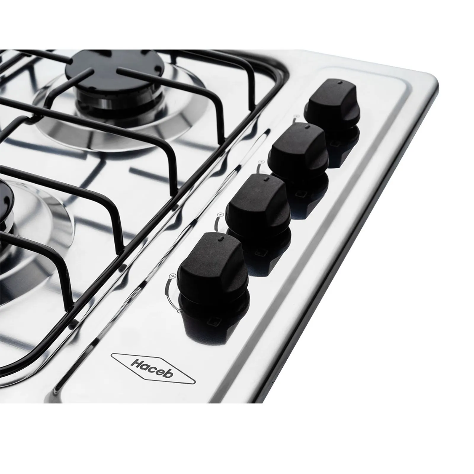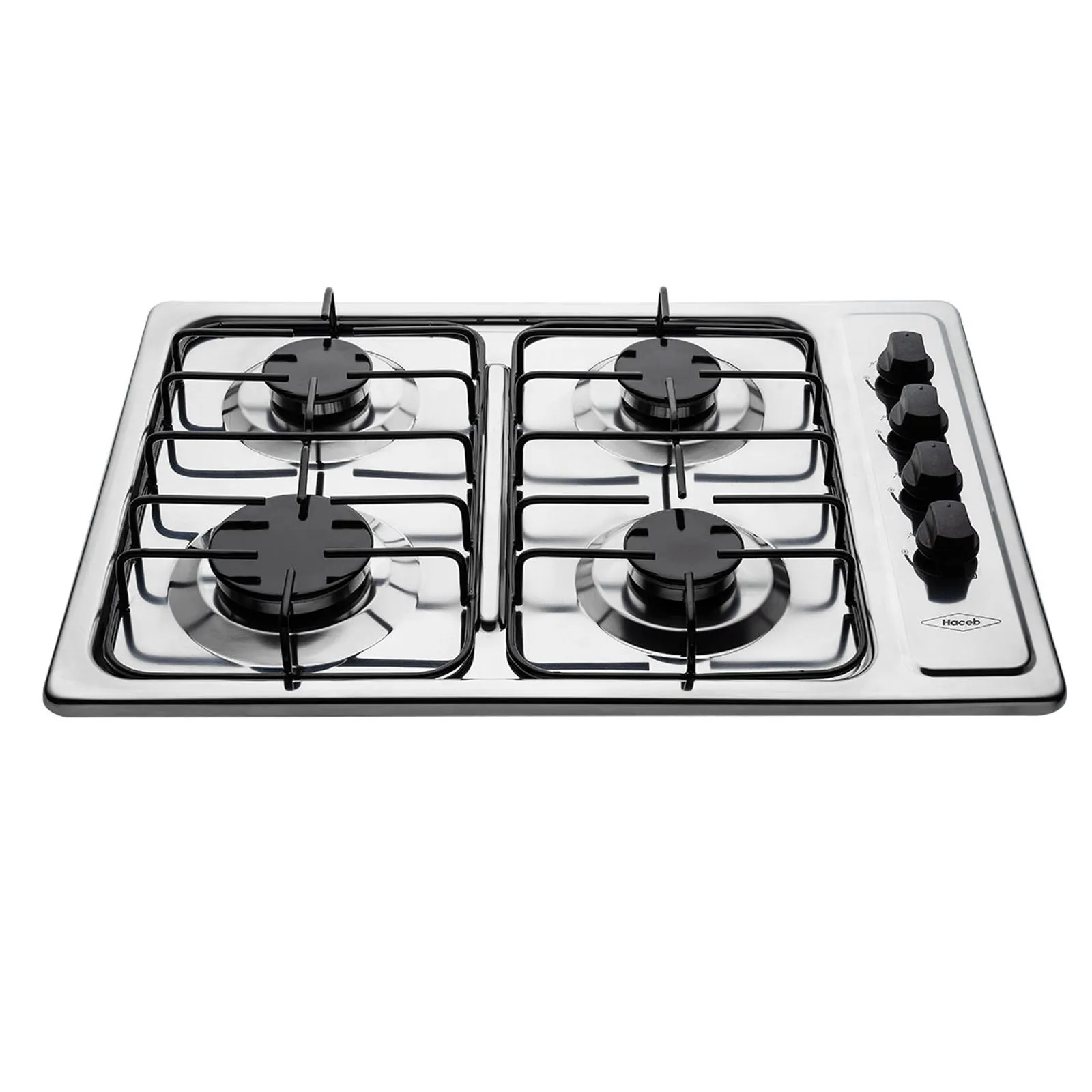 Estufa de empotrar a gas en acero inoxidable de 60×43 cm. Cuenta con 4 fogones en diferentes tamaños que se acomodan a los diámetros de tus ollas y pesos de tus preparaciones y 1 fogón rápido 35% más potenteque agiliza los tiempos de cocción. Es muy segura debido a que posee parrillas contínuas para más estabilidad y seguridad al cocinar. Es de muy fácil limpieza gracias a la zona de encharque que recoge los derrames de líquido y a las perillas removibles. Enciende solo con girar las perillas.