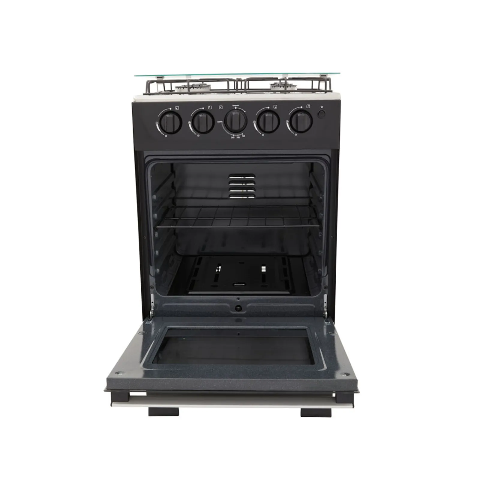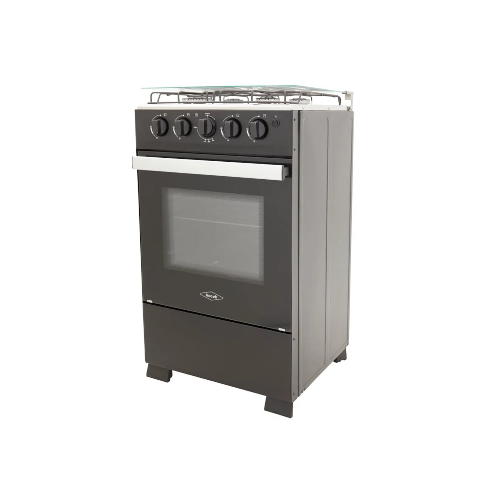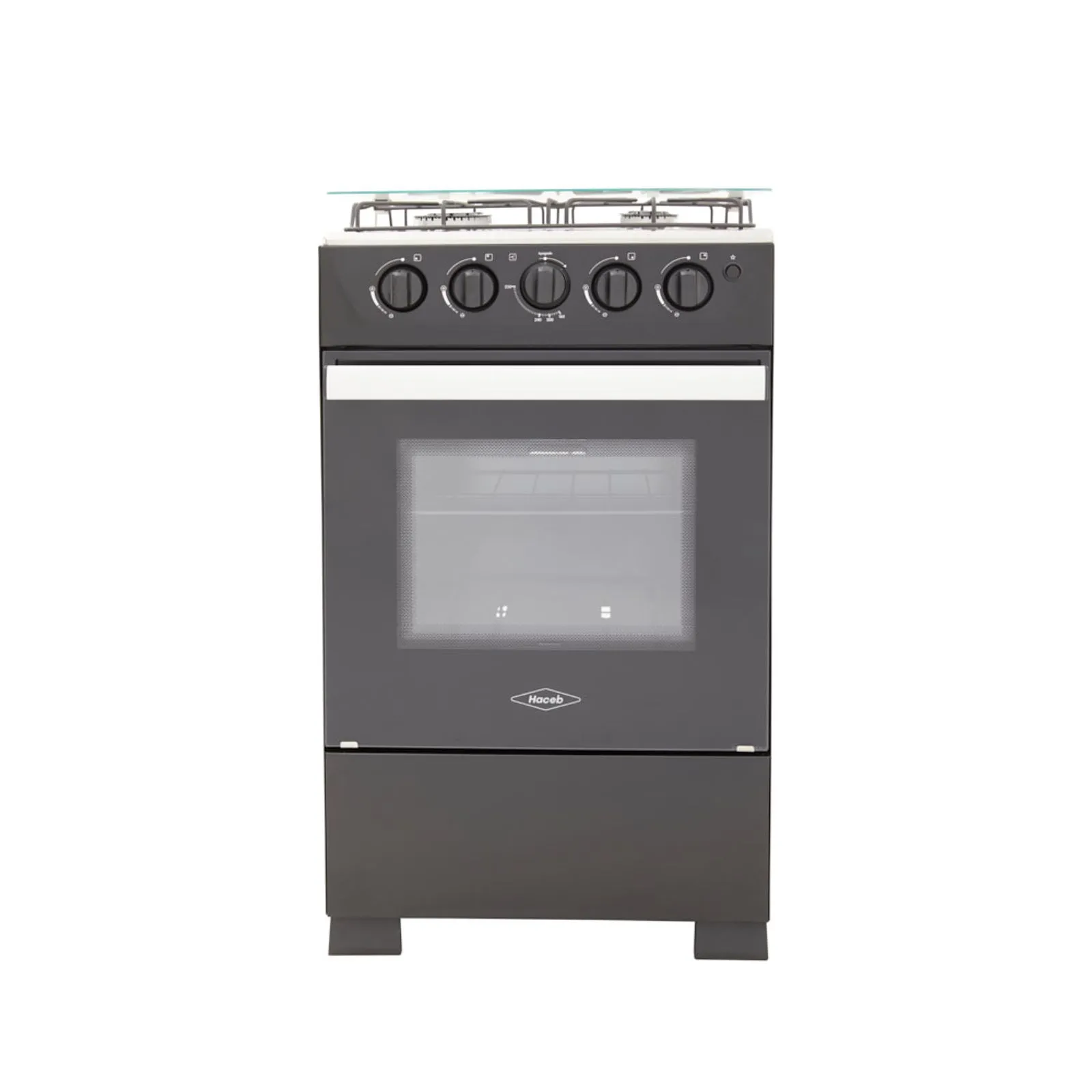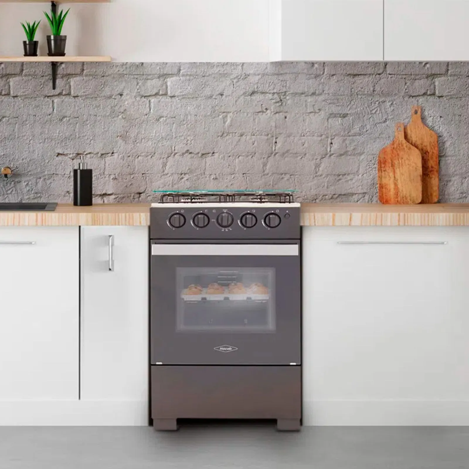 Estufa Haceb de 50 cms de ancho con mesa en acero inoxidable de gran durabilidad, fácil limpieza, parrilla antideslizante, resistencia al calor y elegancia. Cuenta con quemadores de diferentes tamaños, encendido eléctrico, vidrio superior templado para proteger de salpicaduras y soportes inferiores robustos para que cocines con tranquilidad y dejes todo impecable como te gusta. ¡El horno tiene visor amplio para hacerle seguimiento a tus recetas!