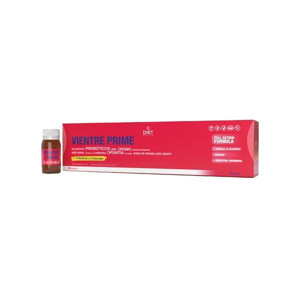 Vientre Prime 20 viales Herbora es una fórmula de gran eficacia que brinda una triple acción: ayuda para la reducción de volumen y contorno del abdomen, eliminación del vientre hinchado y regulación de los niveles de glucosa. Está compuesta por numerosas plantas, vitaminas y minerales, así como de frutooligosacáridos (prebióticos) útiles para equilibrar y sanean la flora intestinal, lo que mejora el tránsito y reduce los problemas digestivos y el exceso de gases.