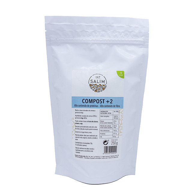 Compost2 Levadura de Cerveza Germen de Trigo Int-Salim es una mezcla de levadura de cerveza con germen de trigo, enriquecida con fibras vegetales, proteínas y fibra. Esta mixtura está indicada para mejorar la estructura y apariencia del cabello, la piel y las uñas.
