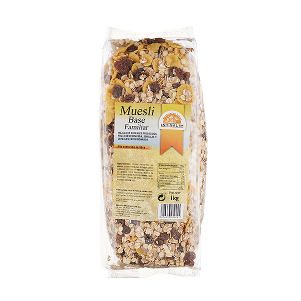 El Muesli Base Familiar de Int-Salim, es un alimento completo, que contiene todos los nutrientes necesarios para mantener una dieta equilibrada. Contiene carbohidratos, proteínas, grasas, minerales, vitaminas, fibra y antioxidantes.