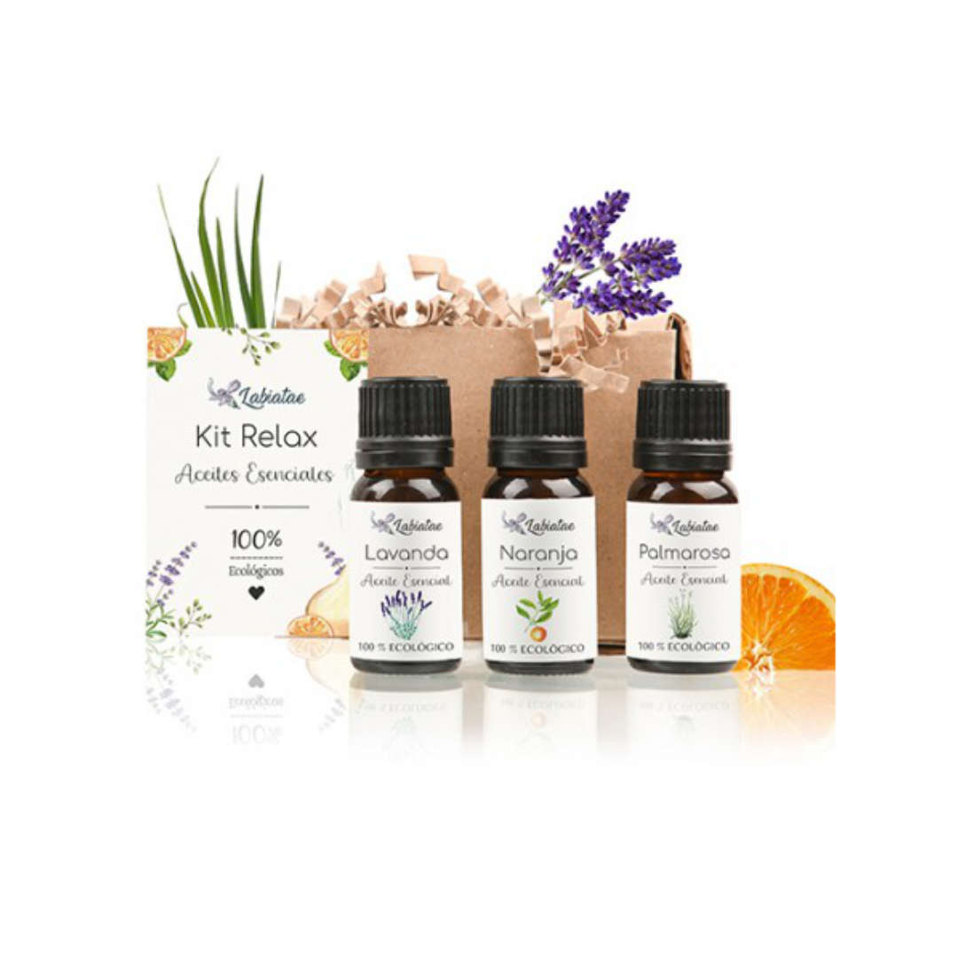 Este completo pack contiene 3 Aceites esenciales en formato de 5ml.: Lavanda, Naranja y Palmarosa.