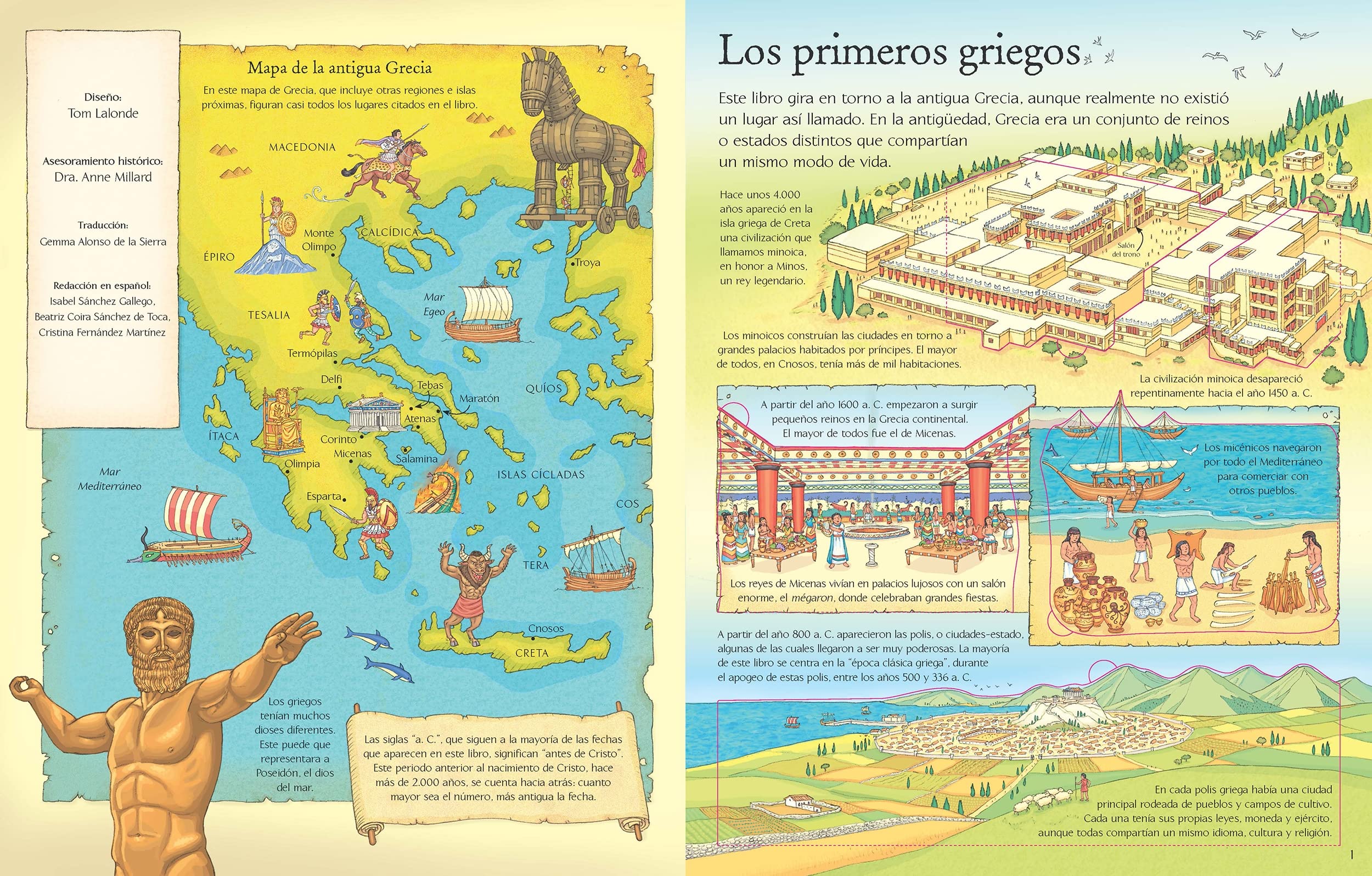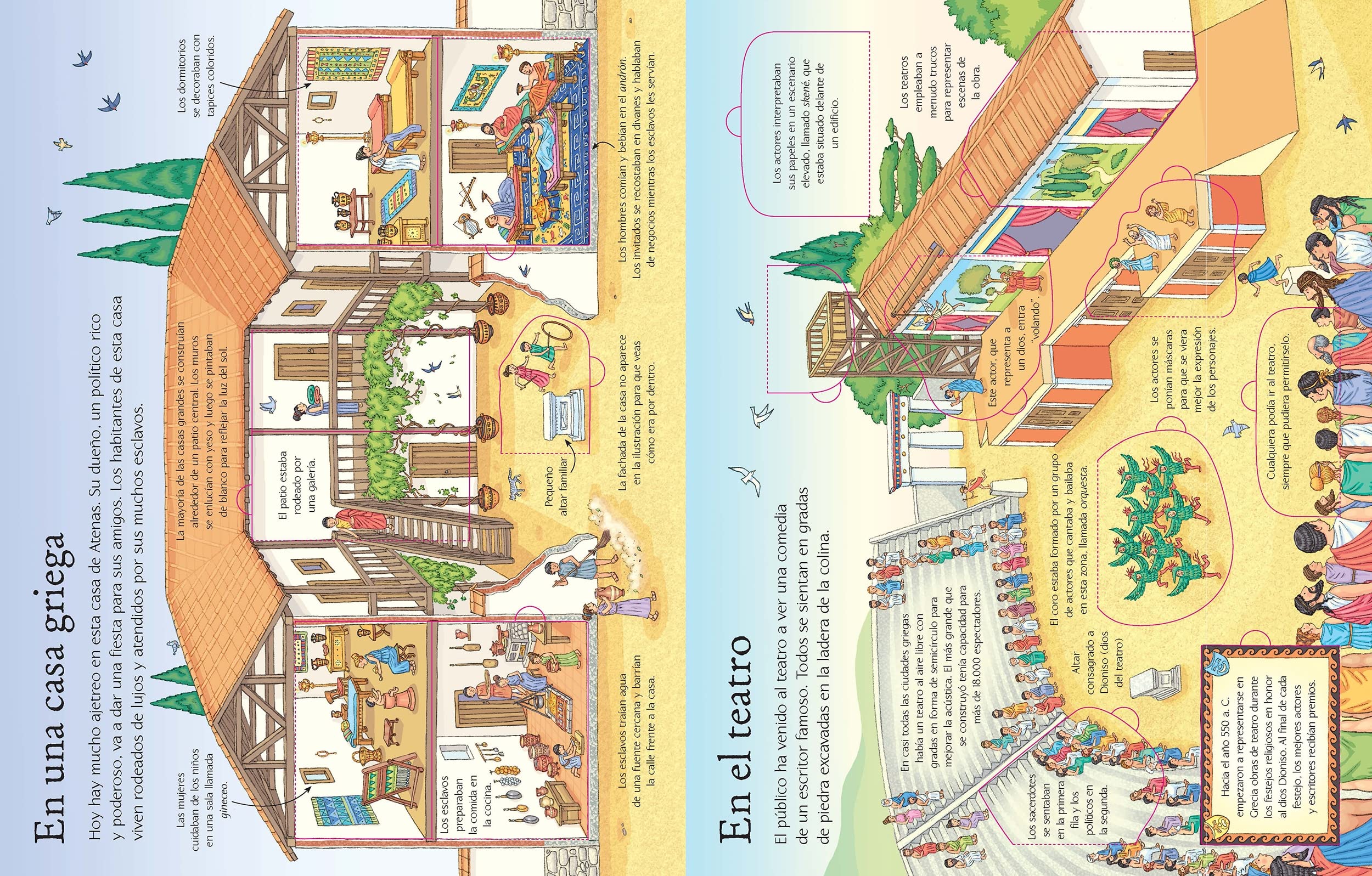 Un viaje a la Antigua Grecia para descubrir sus antiguas metrópolis, el bullicio de sus mercados, sus magníficos templos, sus mitos, el ejército o los Juegos Olímpicos. La historia de una civilización que cambió el mundo contada de forma amena con la ayuda de ilustraciones y solapas que levantar.