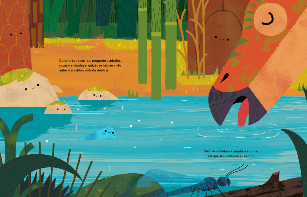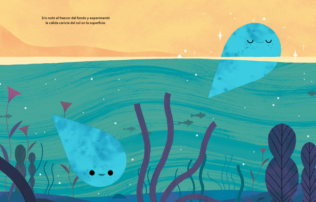Iris es una gotita que está siguiendo el curso del agua. Durante la travesía pasará por diversos paisajes acuáticos, desde riachuelos hasta un mundo submarino. A lo largo de su viaje, Iris se pregunta quién es y cuál es su destino y encuentra las respuestas en la naturaleza, que le revelará el poder de su existencia y la importancia de cada gota en el maravilloso ciclo del agua. Este libro nos enseña no solo la belleza del agua sino también su esencial papel en el sustento de la vida en nuestro planeta y la necesidad urgente de proteger nuestros preciosos recursos naturales.