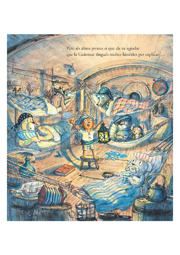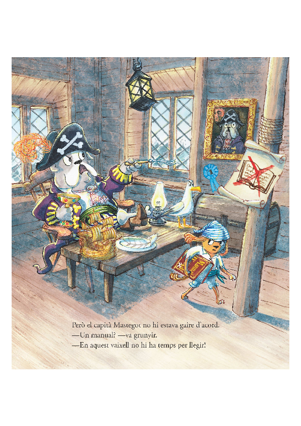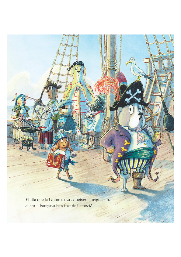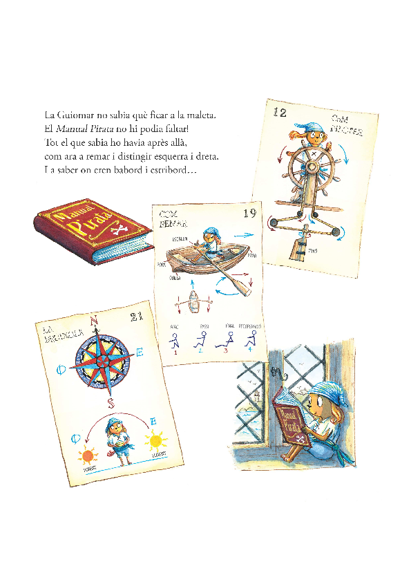 La Guiomar sempre porta el Manual pirata sota el braç; se sap molt bé tots els secrets i trucs necessaris per navegar. I, tot i que al capità Mastegot no li agraden els llibres, quan es complica la travessia el manual de la Guiomar els salva la vida. I si a més arriba un missatge en una ampolla amb el mapa del tresor més gran que s’hagi trobat mai, aquest conte es converteix en una esdeveniment extraordinari. Una biblioteca a bord!