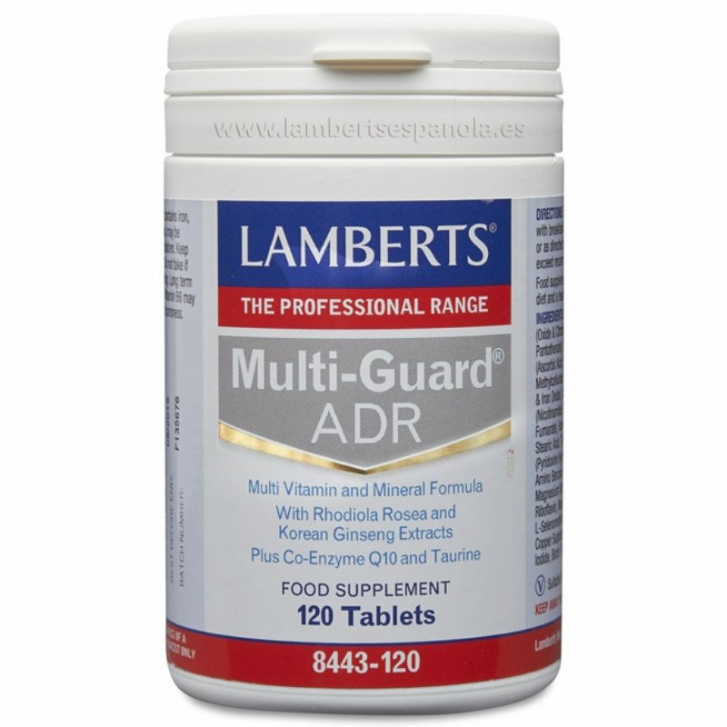 Mutli Guard ADR 120 comprimidos Lamberts es un complemento alimenticio con una fórmula especializada de multivitaminas y minerales que aporta una amplia y óptima combinación de nutrientes y extractos de plantas. Además, contiene también CoQ10, Rhodiola, Ginseng y Taurina, sin vitamina A. Esta combinación de nutrientes ayuda a contribuir en el metabolismo energético normal.