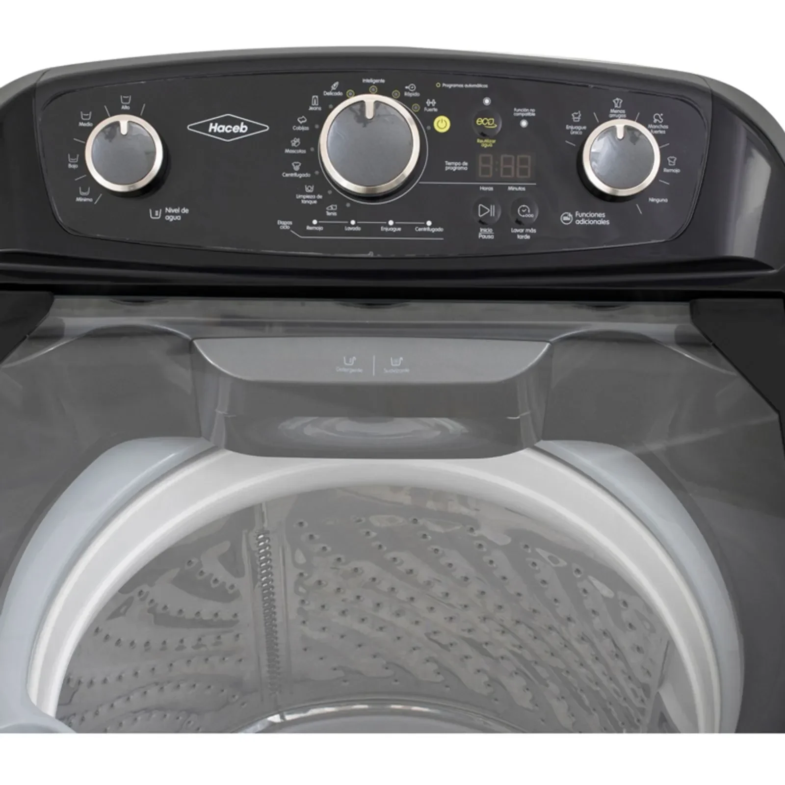 Cuidado ideal para tus prendas preferidas con la Lavadora Manual AWÜA de 13 kg Negra HACEB. Cuenta con un sistema de lavado profundo con corrientes de agua para mayor efectividad, además de 5 programas automáticos que miden la cantidad de ropa y activan el ciclo adecuado. Posee sistema de aerocentrifugado que seca mejor tu ropa, además, un sistema de filtración activa para reducir las pelusas en tu ropa. Incluye sistema ECO para que ahorres hasta 80 litros de agua.