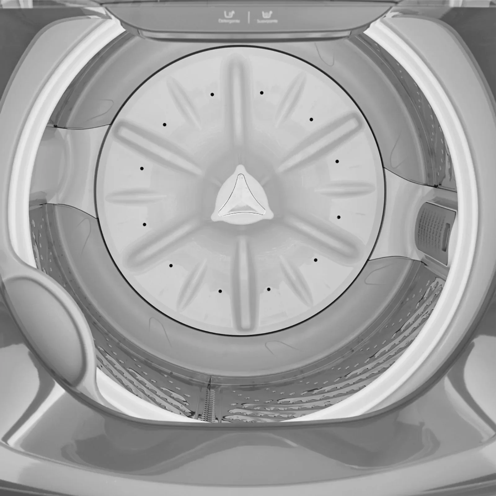 Sistema de lavado de corrientes de agua y movimientos del tanque giro, impulsor y cascadas que lavan muy bien la ropa.