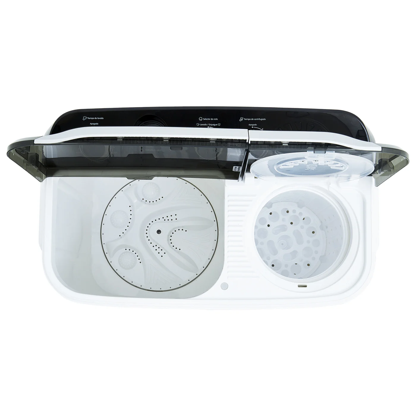 Lavadora doble tina carga superior, con capacidad de 7kg/15,4lb. Lava y centrifuga de manera simultánea en dos tanques independientes. Sistema de lavado por corrientes de agua que dejan tu ropa limpia, fresca y libre de pelusas gracias a su filtro plástico. Resistente a climas extremos, pues está elaborada con materiales anticorrosivos, además podrás limpiar con facilidad su tapa superior removible.