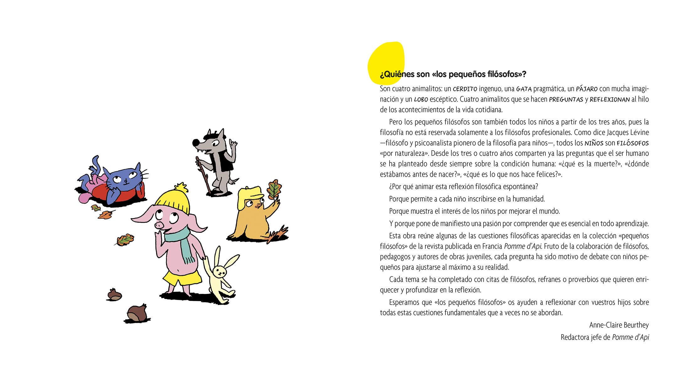 ¿Qué es pensar? ¿Dónde estamos antes de nacer? ¿Qué nos hace felices? Desde los 3 años los niños piensan, tienen la cabeza llena de preguntas y su sed de comprender es inmensa. Estas y otras grandes cuestiones son las que aborda este libro, una oportunidad para conversar con vuestro hijo y animar, alimentar y profundizar en sus interrogantes.
