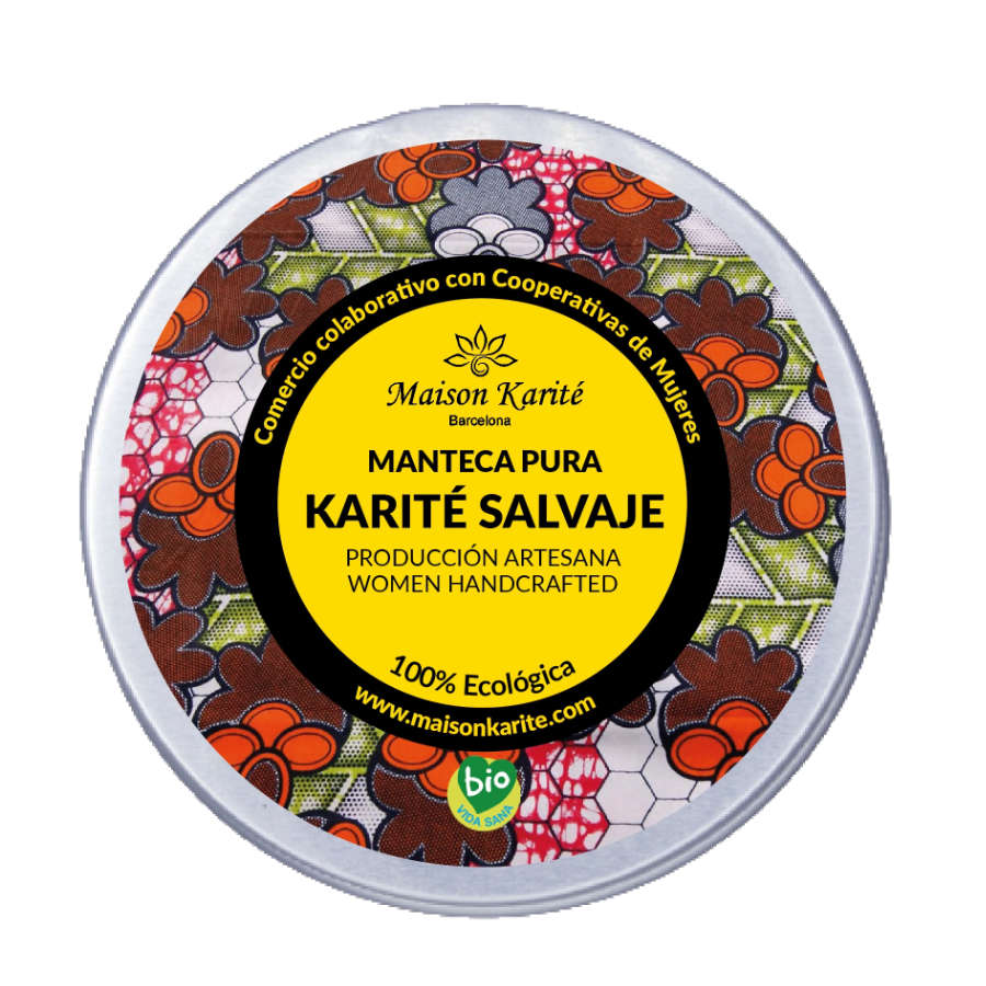 Manteca de Karité Salvaje Artesana Virgen hecha a mano por cooperativas de mujeres. 100% pura, sin refinar, sin aditivo alguno con Certificación Ecológica y de Comercio Colaborativo con la Cooperativa de Murugu, una pequeña agrupación de mujeres recolectoras que trabajan y preservan una maravillosa área catalogada como reserva natural de elefantes en el Norte de Ghana.
