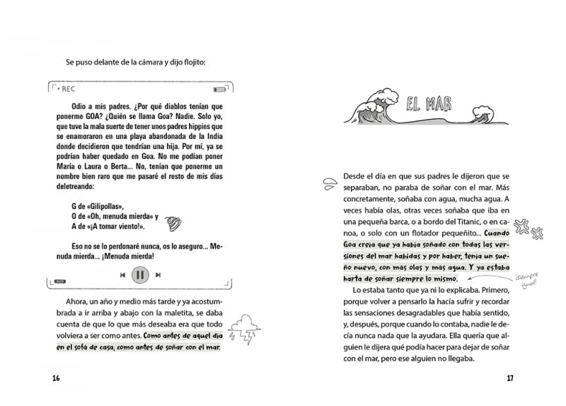 Goa es una adolescente que acaba de cumplir 12 años y ve cómo su vida da un giro inesperado de la noche a la mañana: sus padres se han separado, ahora tiene dos casas y toda su vida repartida entre ellas. Además, su padre va a tener un hijo con su nueva pareja, o sea que… ¡tendrá un hermanito! Cuántas cosas para tener solo 12 años. Goa solo quiere estar tranquila y que le dejen un ratito con la tablet para expresar todo lo que le pasa por la cabeza en un diario que graba en vídeo para sí misma. ¡Porque crecer no es nada fácil!