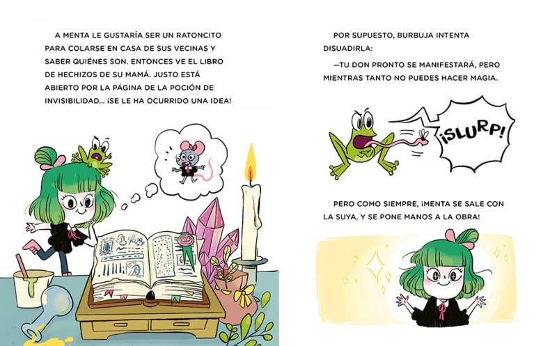 Menta ha descubierto que tiene una nueva vecina de su edad, ¡y también es una brujita! Tiene muchas ganas de conocerla y saberlo todo sobre ella. Por eso decide preparar una poción para colarse en su casa sin que nadie la ve. ¡Pero lo que no sabe es que beber demasiada poción puede hacer que apestes.