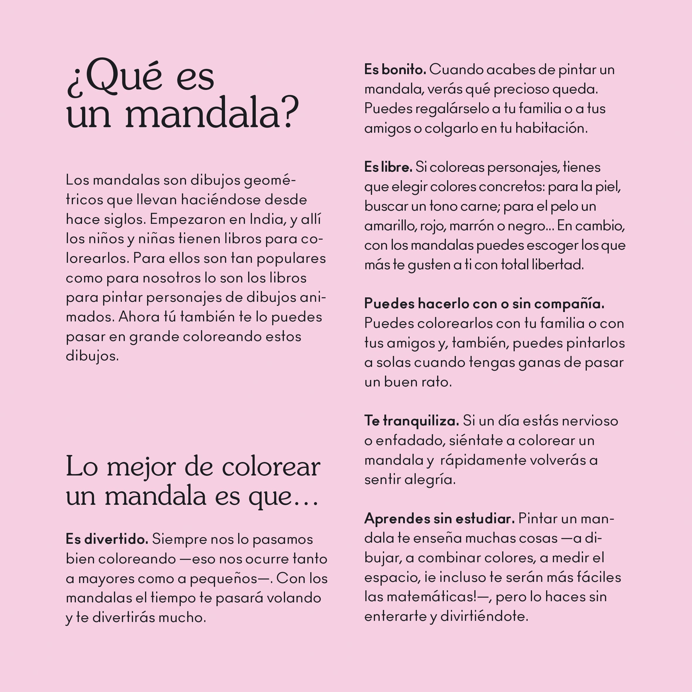 Este libro contiene 44 láminas de mandalas para que las colorees y te lo pases en grande. Elige tus colores preferidos, deja volar tu imaginación y prepárate para una gran experiencia. Cada dibujo te transportará a un mundo de aventuras donde todo es posible.