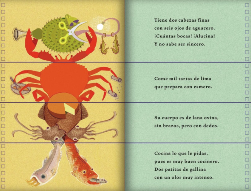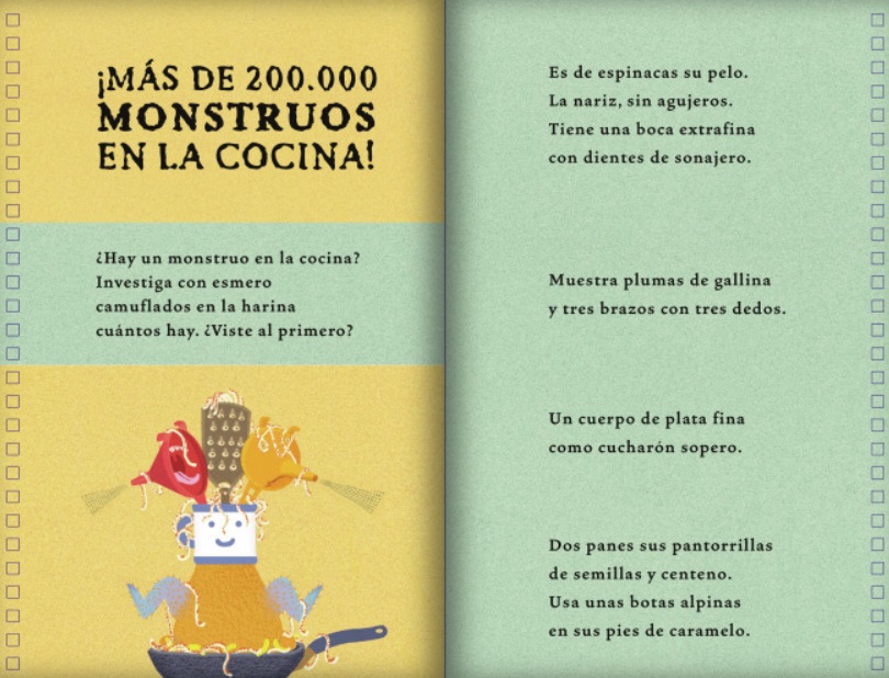 Hemos descubierto una cocina que alberga criaturas terroríficas. ¿Y si les cambiamos los pies? ¿O la cabeza? Crea tus propios monstruos imaginarios combinando las solapas de este libro interactivo. ¡Las posibilidades son infinitas! Y… ¡todas riman! Un libro objeto lleno de locuras poéticas para poder crear… ¡más de 200.000 fabulosos monstruos de cocina!