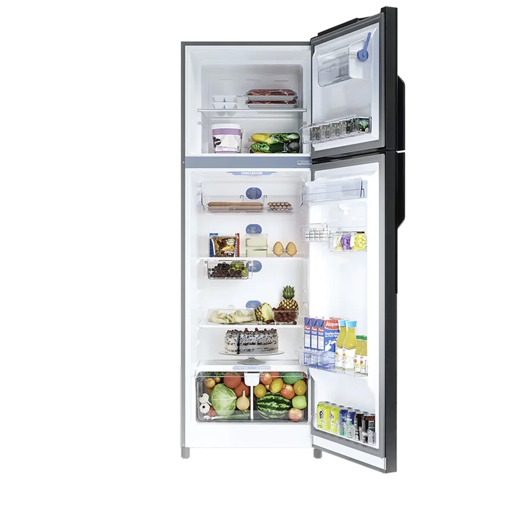 | Accesorios | Vidrio templado con boceles en el congelador Compartimiento frutas y verduras con control de humedad Bandejas vidrio anti-derrame Bandeja multiusos Porta huevos Separador de frutas y verduras Fabricador de hielo Anaqueles genéricos / Anaqueles envases pequeños / Anaquel pocket Dispensador de agua externo Separador de botellas |