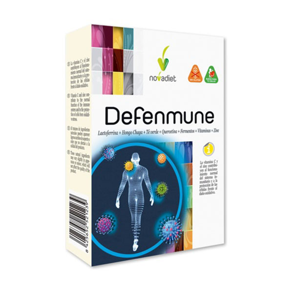 Defenmune es un producto de Nova Diet que reúne una serie de nutrientes que ayudan a reforzar el sistema inmunológico y a prevenir enfermedades. La vitamina C y el zinc, junto a otros nutrientes como la lactoferrina, el hongo chaga, el té verde y la quercetina, ayudan a proteger las células del organismo frente a los daños, a retener el hierro libre y a regular la producción de fermentos. Con Defenmune, disfruta de una mejor protección frente a los virus y un refuerzo de tu sistema inmunológico para evitar enfermedades.