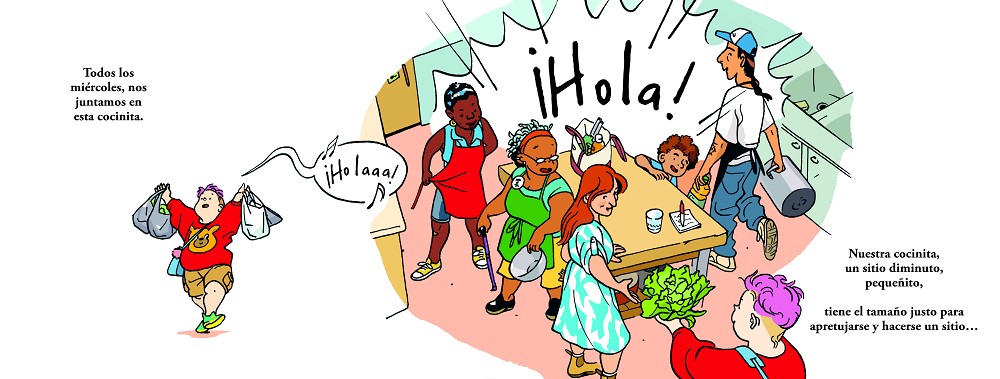 En este alegre y conmovedor libro ilustrado de Jillian Tamaki, un grupo de ingeniosos vecinos se reúne para preparar una deliciosa comida para su comunidad. Con un jardín repleto de alimentos, una cocina de lo más caótica y una mesa llena de platos, Nuestra cocinita es una celebración a los estómagos llenos y a cuidar los unos de los otros.