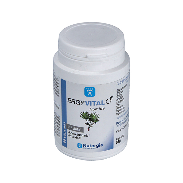Ergyvital Hombre de Nutergia es un suplemento completo que brinda los nutrientes necesarios para mantener una buena salud masculina en mayores de 45 años. Contiene varias plantas y antioxidantes que trabajan de forma conjunta para aliviar las enfermedades de la próstata y mejorar la vitalidad y el bienestar. Esta fórmula contribuye a mejorar la salud de los hombres ya que sus componentes tienen propiedades beneficiosas para el organismo.
