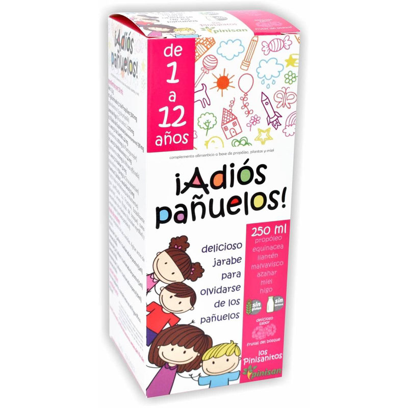 Adiós Pañuelos de Pinisan es un complemento alimenticio pensado especialmente para los niños. Está formulado con sus nutrientes para ayudar al funcionamiento normal del sistema inmunitario. Contiene una deliciosa mezcla de plantas especialmente adaptadas para proporcionar un soporte vitamínico y mineral a los más pequeños. Su sabor a frutas del bosque, hará que dejar los pañuelos para siempre sea divertido.
