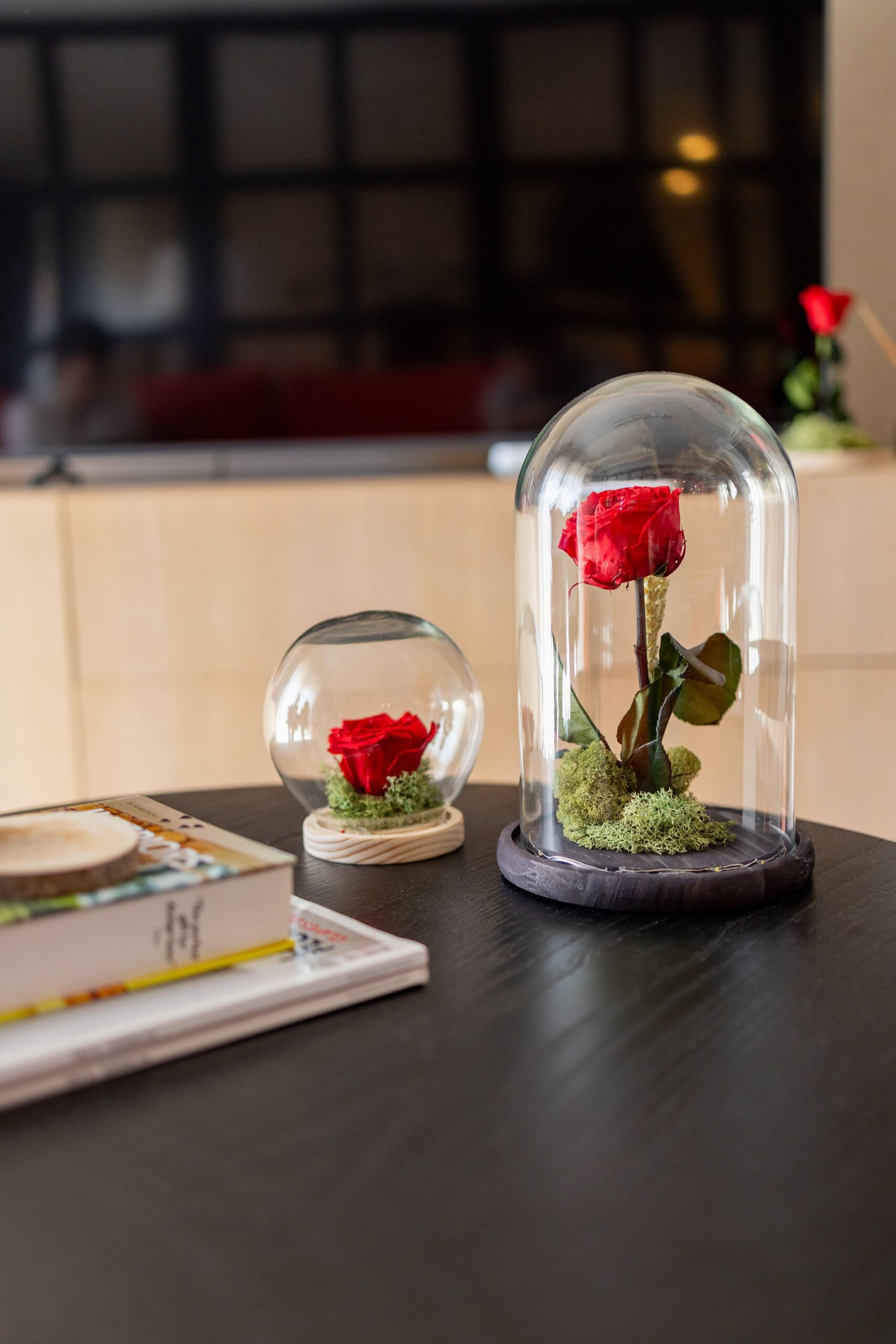 Sumérgete en la belleza eterna con nuestra cúpula de cristal esférica, que encierra una delicada rosa roja preservada. Esta cautivadora pieza fusiona la elegancia del cristal con la exquisita naturaleza de la rosa, creando un ambiente encantador y romántico en cualquier espacio de tu hogar.