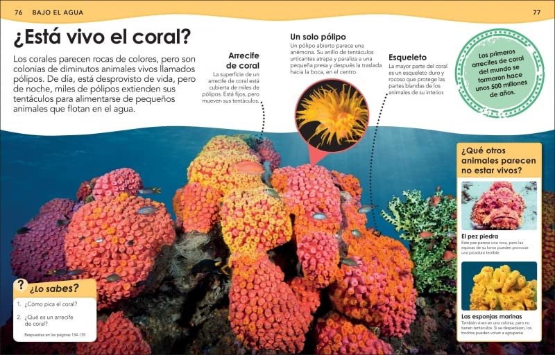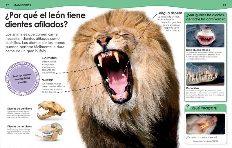 Duermen los peces? ¿Cómo cazan los tiburones? ¿Por qué bailan las abejas? ¿Cuál es el insecto más grande? ¿Qué hay en la joroba de un camello? ¿Ven colores los perros? ¿Por qué los flamencos son rosas? ¿Por qué los tigres tienen rayas?