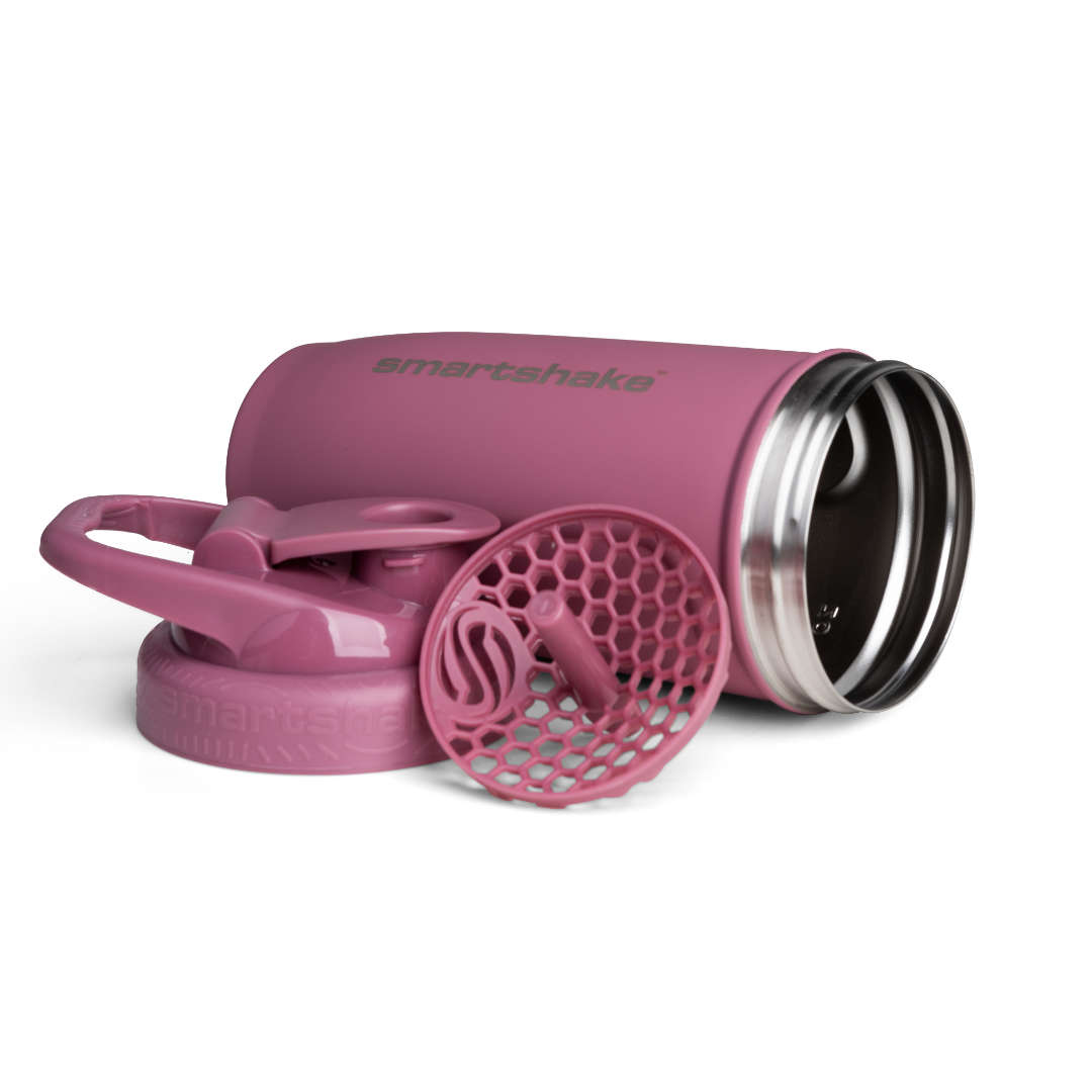 Botella mezcladora de acero resistente y calidad alimentaria, ultra-duradera e higiénica.