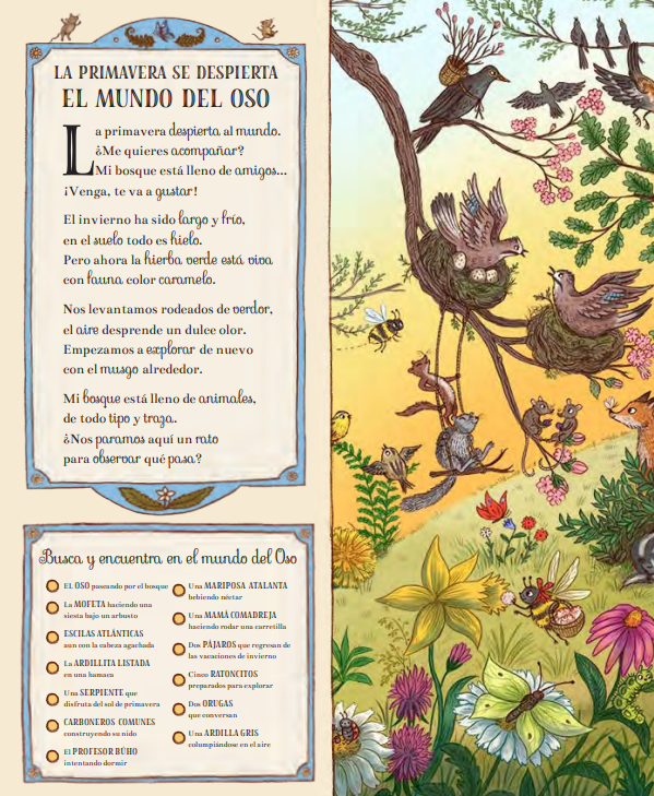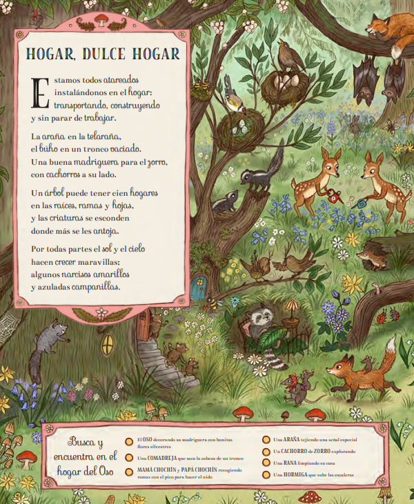 - Cada página combina poesías con un montón de detalles escondidos para encontrar.