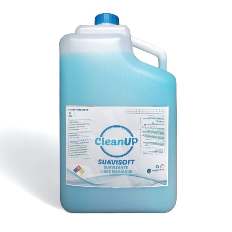 Suavizante Libre Enjuage Suavisoft concentrado profesional de alto rendimiento.Además deja la ropa esponjosa, suave al tacto, agradablemente perfumada y con sensación a limpio.Tambien reduce la electricidad estática del lavado y elimina restos de detergente acumulados en las fibras para facilitar el planchado posterior.Especialmente es biodegradable. ¿PORQUÉ COMPRAR ESTE SUAVIZANTE?Suavizante Libre Enjuage Suavisoft concentrado para numerosos lavados. Basta con una pequeña cantidad para unos resultados perfectos en cualquier tipo de tejido. Agradablemente perfumado a esencia fresca de excelente calidad y alta persistencia que perdura en el tiempo durante días. Deja la ropa suave, esponjosa y agradable al tacto. Facilita un planchado cómodo y rápido evitando la aparición de arrugas.Sobre todo biodegradable 100 %.Respetuoso con el medio ambiente.¿CÓMO FUNCIONA?Claramente excelente calidad y rendimiento.Especialmente formulado con los mejores tensoactivos catiónicos del mercado que dejan las fibras de los tejidos suaves, esponjosos y con efecto antiestático. También agradablemente perfumado a esencia fresca de alta consistencia para un olor prolongado en el tiempo. MODO DE EMPLEO:Incorporar directamente al depósito de la lavadora o sistema en función del frescor y acabado deseado. RECOMENDACIONES:Para una limpieza profunda de ropa extremadamente sucia recomendamos nuestro detergente de ropa industrial Determax Colors o White. Su fórmula concentrada está diseñada para la limpieza de manchas difíciles fuertemente adheridas como grasa mecánica, aceite quemado, óxido, sangre, y en general todo tipo de suciedades.Ideal para la limpieza de prendas de uso profesional como «monos de trabajo», petos, uniformes, etc. PRECAUCIONES:Este producto está formulado para profesionales. Manténgase fuera del alcance de los niños.